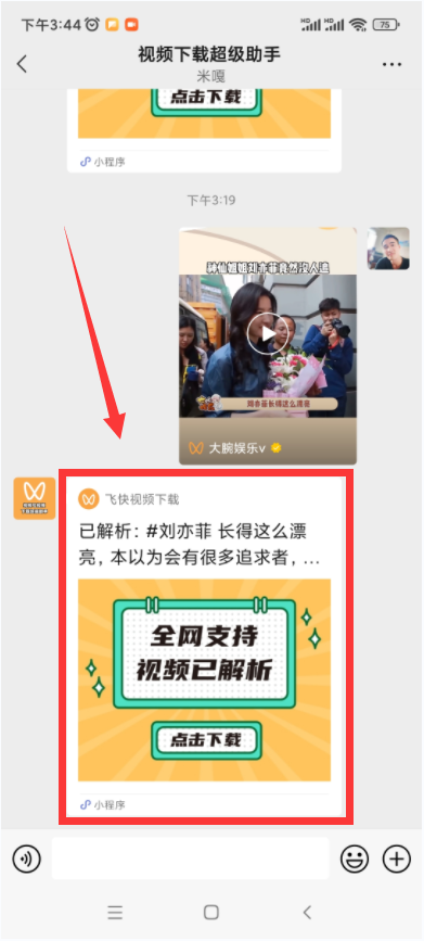 第3步:点击客服机器人返回的消息进入下载页面,保存相册,完成。